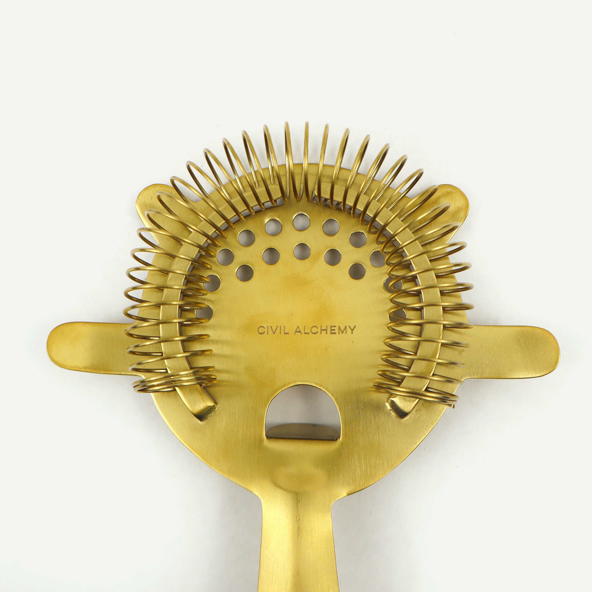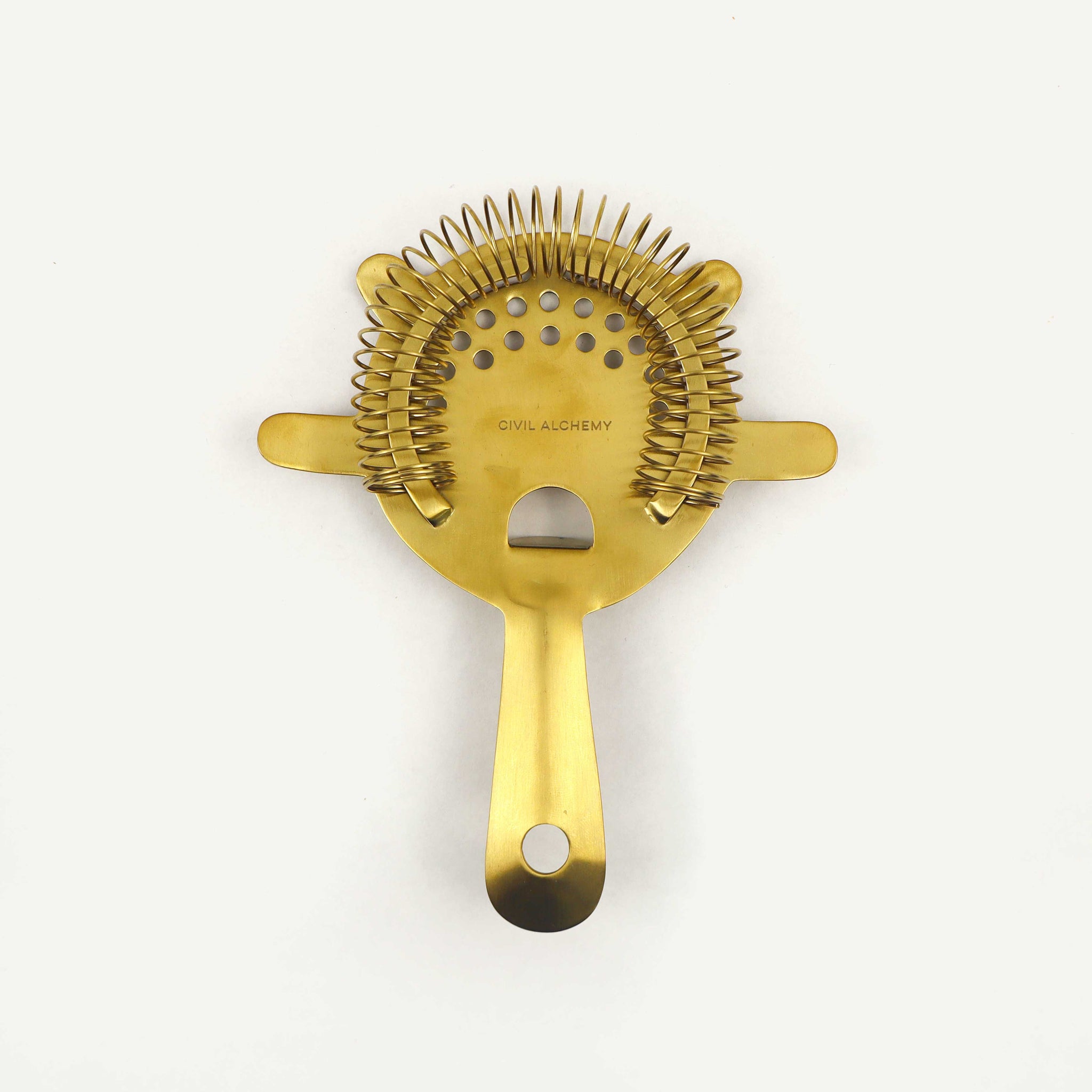 The Cocktail Strainer combines refined design with practical craftsmanship. Made from solid, polished brass and finished with a stainless steel coil, this essential bar tool delivers precision straining and lasting quality. Its elegant form complements any curated barware collection, while its functionality ensures smooth, consistent results. Designed to pair with the Civil Alchemy Cocktail Shaker or any standard mixing vessel.