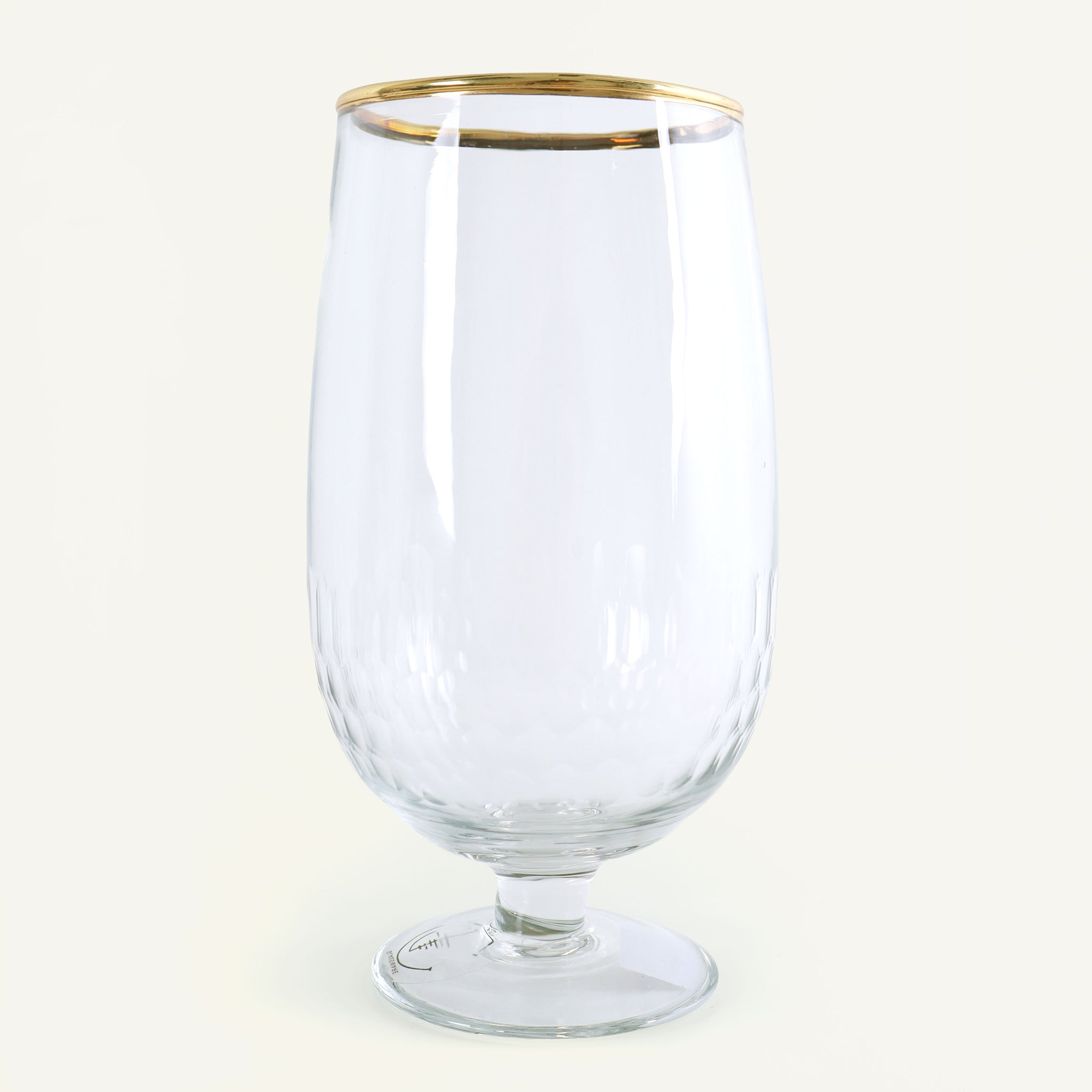 The Etched Beer Glass with Gold Rim offers handcrafted detail and visual interest for tabletop and gift assortments. Each glass is hand etched in India and finished with a fine gold rim, creating a balanced blend of function and design. With five unique etched styles across each set, these glasses provide variety while maintaining a cohesive presentation. Sold as a set of six, they are well suited for wholesale home goods and barware collections.